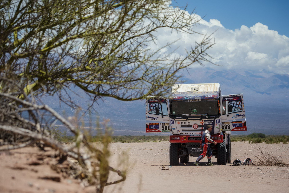 Naprosto odlišně vstoupili do desáté etapy z Chilecita do San Juanu Martin Kolomý a bratři Kiliani. Ti museli téměř čtyři hodiny opravovat chlazení motoru a v celkové klasifikaci, kdy už to vypadalo na slušný výsledek mezi nejlepší osmičkou, se propadli na šestnácté místo. „Ze začátku nám to hodně vyhovovalo, ale pak se nám zastavilo auto. Měli jsme problém se zadřeným ložiskem šponováku řemenice. Odstavilo nás to na dlouho, protože jsme museli vyměnit ložiska a stáli jsme skoro čtyři hodiny, než se to schladilo a dali jsme to dohromady. Pak jsme se snažili dál, trať byla na Tatru ideální a šlo to dobře,“ řekl v bivaku zklamaně Martin Kolomý.