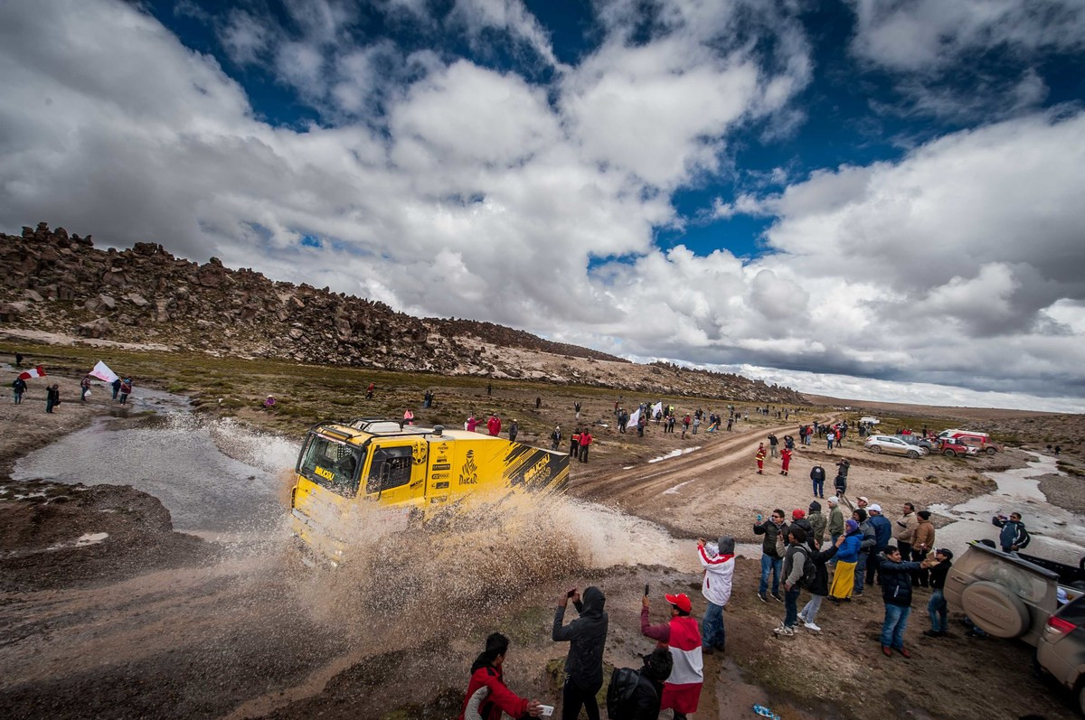 Postřehy vnímavého mechanika z páté etapy letošní Rallye Dakar: "V půl šesté vstávačka a hned do auta. Připoutám se do pěti bodů a připadám si jak ten kejvací pes. To zas bude cesta. Trať vede křížem krážem, takže jezdíme tam a zpět, jako důchodci v nákupáku. Zatím to vypadá, že kluci tahají, ale když je potkáme v cíli a vyprávějí, co všechno je potkalo… No, nic. Jedeme do bivaku. Myslel jsem si, že se v autě nebojím, ale cesta, na které máte nahoru i dolu sráz půl kilometru a pod ním moře není super. Na svodidla tu nehrají. Konečně v bivaku, 11 hodin, takže spánek asi nebude. Ještě pro razítko do pasu, zítra do Bolívie. A jdeme na to. Trocha svářečky, samozřejmě namazat, protože, jak mě od mala učil táta: kdo maže, ten jede. A to my potřebujeme. Protáhlo se nám to trochu, takže ráno jsme ještě pokecali s Brabčákem, který vstával na start. Teď jdu na hoďku umřít. Dobrou."